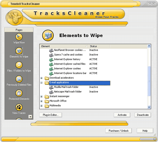 By surfing the Web you create an information trail that hackers, other users of your computer and anyone else with technical savvy can use to learn about you. They can find out your surfing habits, view your Web history and even collect your personal or credit card information. Tenebril's TracksCleaner protects your privacy by erasing your Web history, cache, clipboard, cookies and more to Department of Defense standards.